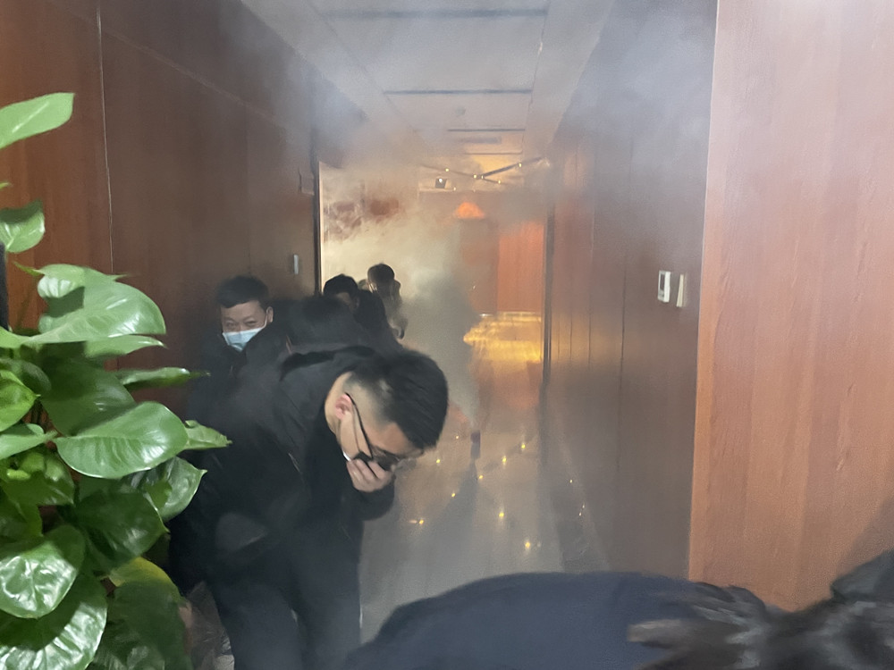 安全知识培训结束后,接着,在一声警报声中进行了逃生演练,员工立即到指定岗位,以最快速度有秩序有组织的走进楼道向紧急疏散点逃生。参与演练的人员看到浓烟在高层呼救的,有用手帕、毛巾等捂住口鼻,低着头、弯着腰、贴着墙快速疏散的,直到最后一名人员逃生至紧急疏散区后,由清点员进行清点人数,并向协调员汇报,本次演练在紧张而不慌乱、人多而不拥挤的场面下结束。